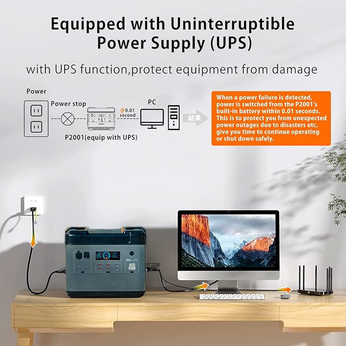 Función SAI integrada: cambia automáticamente a batería en 10 ms ante apagones, protegiendo datos y equipos sensibles.