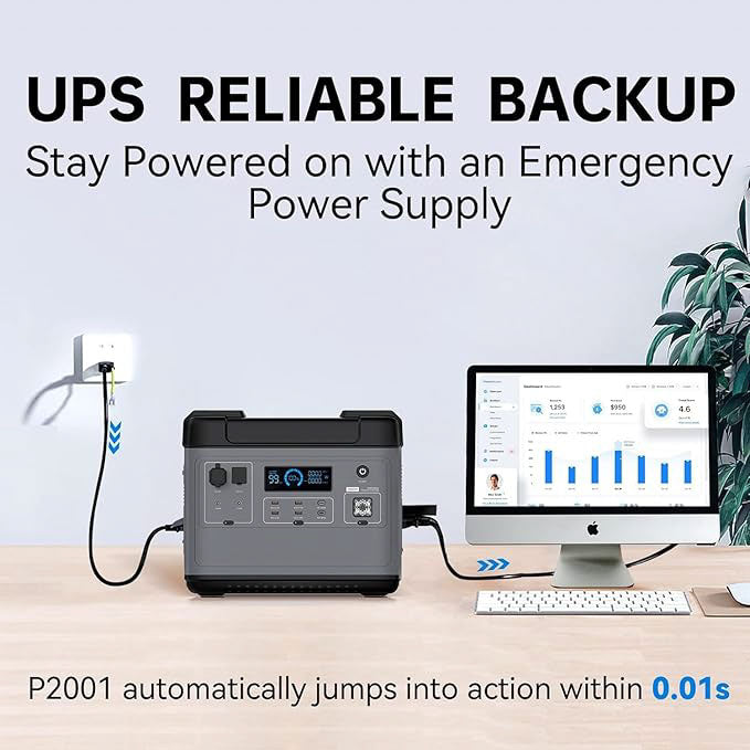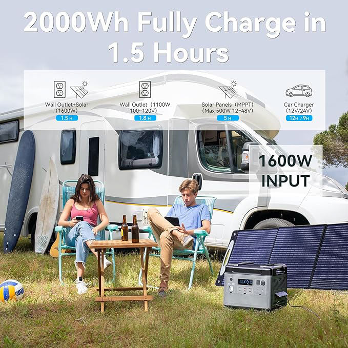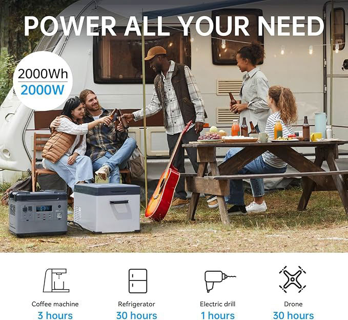 Potencia superior y duración prolongada: Capacidad de 2000 W continuos. alimenta desde refrigeradores y microondas hasta herramientas eléctricas y laptops.